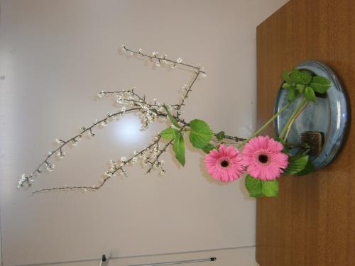 Nous venions d'avoir deux jours de très beau temps . Cet a.m. cours d'art floral japonais, voilà le bouquet réalisé. (Hana Mai) Bonne soirée à toutes |