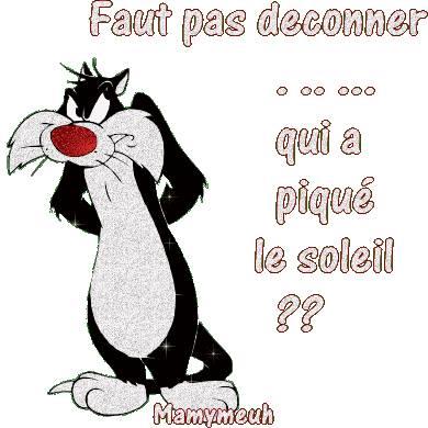 EVELYNE pour ta voiture tu m'as bien fait rire , mon mari aussi à une conduite pépère comme lui disent les filles et moi même , je ne conduis plus sinon je pense que j'aurais eu pas mal de point de sauté , et quand ma fille vient elle dit à mon mari je te prend la voiture pour te la décalaminé :D :D :D :D pour ta voiture rien de bien grave oufffff !!!!!!!!!! Nous avons un soleil splendide oh !! que ça fait du bien , je vais en profiter :-q :-q :-q Pour ta stabilisation il faut peut-être que tu fasses 1600 et 1400 en jonglant et petit à petit ça va se stabiliser avec des hauts et des bas mais je pense que c'est normal il faut que le corps s'y fasse courage :-q MICHELE et MARIE j'espère que vous aussi vous avez le même soleil :-q :-q bonne journée , je vous embrasse Claudine |