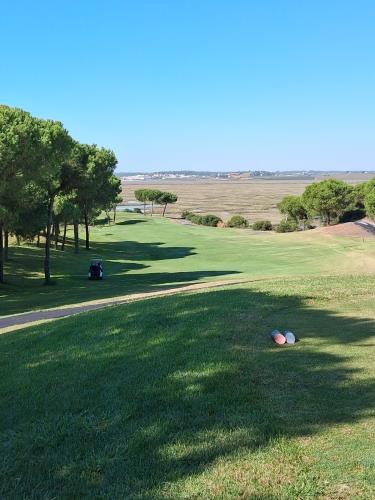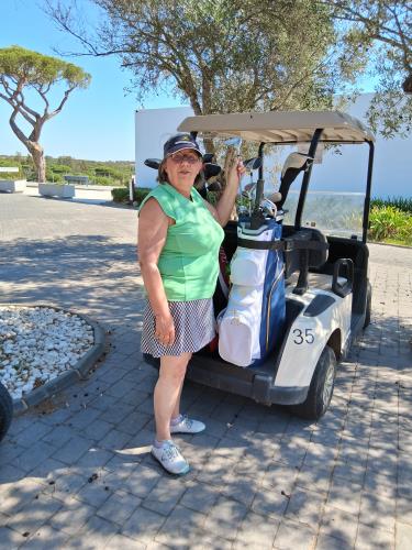 Je voulais vous envoyer ma trombine après 4 h de golf sous la chaleur, ça vaut le coup :D :D 2ème parcours vient de se terminer, et comme il fait très chaud à cette heure, contente d'avoir fini. . . J'essaie de vous joindre photo d'une vue magnifique au départ du trou numéro 12, au loin l'océan. . . Je commence à perdre ma jupe, est ce possible que ce soit la fonte qui arrive ? ? ? :D :D A+ |