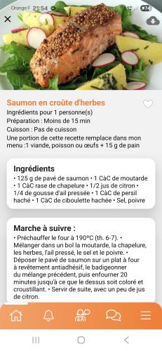 En poisson j’aime beaucoup le dos de saumon ou de cabillaud en croûte d'herbes, c’est une super recette savoureuse avec n’importe quel filet de poisson :-q |