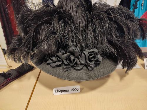 je réessaye. . .chapeau 1900 40 plumes qq fleurs en taffetas et noeud de tulle à l arrière