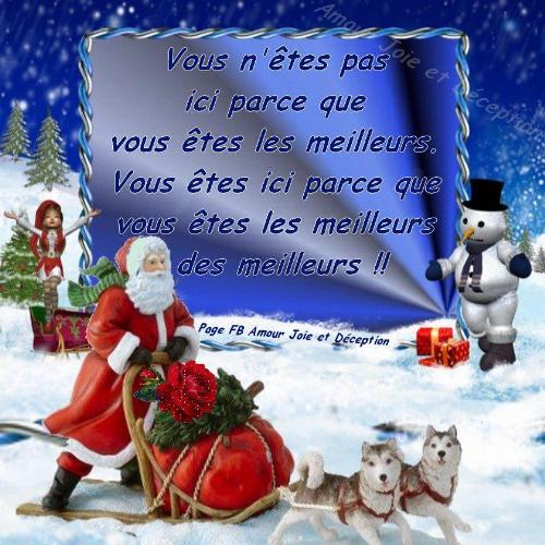 Je suis déjà debout et je vaque à mes occupations dans ma cuisine pour le repas de ce midi. Je ne veux pas être à la bourre.Si vous avez réveillonné, je suppose que vous dormez encore, cela dit, j'espère que vous avez apprécié ce repas annuel qui marque souvent la convivialité et la bonne humeur et que le père Noël vous a gâté. Si ce n'est pas le cas, dite le moi, je vais le gronder car je lui avais demandé de gâter les filles de notre forum parce qu'elles étaient motivées, pensaient à leur objectif et se serraient les coudes |