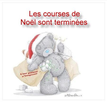 Un coucou vite fait avant d'aller finir mes achats pour Noël, il me manque quelques bricoles pour réaliser mon menu, les cadeaux, c'est fini et sont emballés, la déco finie aussi, je gère mais demain boulot alors il faut prendre de l'avance et oui, c'est ça une femme organisée n'est ce pas?