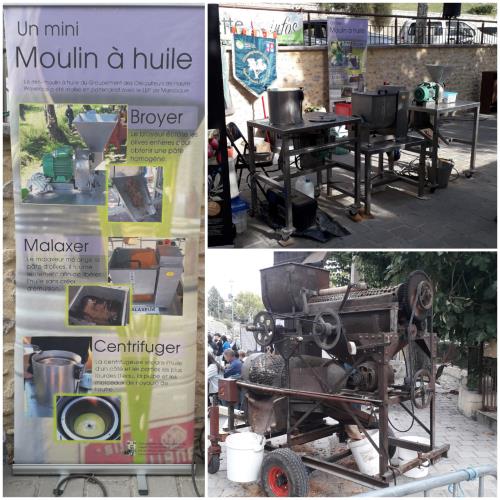 J'étais à Valensole 04 pour la 4ème Fête de l'Amande, de la Pistache et de l'Olive. En photo: Mon stand du GOHPL et le mini Moulin pour expliquer la trituration des olives pour obtenir de l'huile. Trituration : 3 phases, Broyer Malaxer, Centrifuger Et un cassoir d'Amandes des années 1900.. qui fonctionne encore en présentation 👍 GOHPL : Groupement des Oleiculteurs de Haute Provence et du Luberon. " association d'oleiculteurs " |