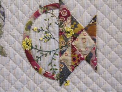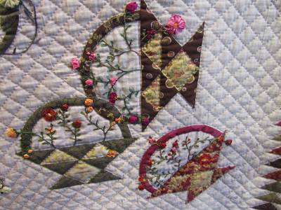en voilà un autre pour que vous remarquiez la broderie des paniers et la délicatesse des finitions ! c'est beau comme tout :x et le quilting du fond !!!!!!! :-q , quel boulot et quel mal, cette quilteuse s'est donné :-q :-q :-q :P |