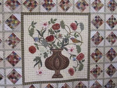 hé les filles, vous vous en doutez, la choucroute, j'adore, je n'en fais pas souvent, mais quand j'en fais, je ne me prive pas !! ;) allez, un autre très beau quilt, avec un "arbre de vie" en médaillon ! |