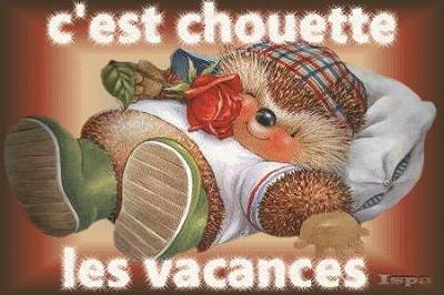 Coucou les filles et . . .loup. . .oh je préfére LOULOU :-q Alors LOULOU ,tu as passé du bon temps avec tes amis :-q ,et te voila sur le départ pour AIX ,puis ensuite les alpes fin de mois :P :P ,profites bien avec ton amie et reviens nous avec des étoiles dans les yeux,bonnes vacances cher LOULOU B-) YETTE ,aujourd'hui :cartes ou pas ? ? ? quoiqu'il en soit ,j'en profite pour te souhaiter ta fête :-* MARIE B ,un jour de moins au compteur pour les vacances :P ,ça vient ça vient :D MADRAS ;) tu as tout compris sur la définition de la retraite ,j'adhère :-q VICCY ,que fais tu ??as tu trouvé des occupations pour combler le vide des vacances éstivalles de tes associations ? CHANTAL ,boulot et travaux dans ton futur nid douillet :P :P Il a beaucoup plut cette nuit et ce matin ,certes c'est bon pour la nature. . .mais dommage pour les manifestations prévue ce soir en prévision de notre fête nationale :-S :( ,pfff jamais contents que nous sommes les français ;) Moi bobo tête @-) ,surement manque de sommeil . . .que faire ? ? ? Midi : re poisson ( plus pensé que mangé hier :-S ,pas grave . . .bon ) avec haricots verts et tomate ,fromage blanc o % ,brugnon, et c'est tout . Vais aller prendre un ptit café ,et réveiller zhom qui dort FORT devant le tour de france , mais qui j'en suis sur va me dire " je ne dort pas ,je réfléchis" :( ah oui les yeux fermés :D réfléchit forrttt ;) Bon aprém ! |
