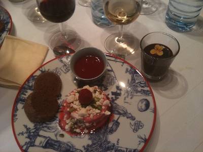 et le dessert vacherin framboises et coulis de fruits rouges + pot chocolat et sablés