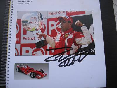 Sur la Pit-Lane devant le moto-room Ferrari Felipe Massa me signe mon book photos pilotes avec mon markeur qu'il gardera !!!!!jeudi après les libre 1 et 2