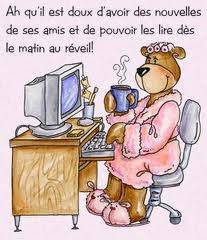 temps épouvantable aujourd'hui chez nous il fait gris avec du brouillard , pas question de sortir cet après midi bon je crois que les galettes des rois c'est terminé pour moi , c'est bien bon mais la balance samedi va me dire le contraire enfin on verra je vous souhaite une bonne journéé et a bientot bisous :-* :-* :-* manou |