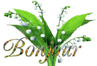un grand bonjour à vous! je viens vous souhaiter une bonne journée du 1er Mai, je vous offre ce muguet virtuel mais le coeur y est! que ce muguet vous apporte tout le bonheur possible, santé, amour, argent, amitié, et que du bonheur. . ..! gros bisous et joyeuse fête du 1er Mai! |