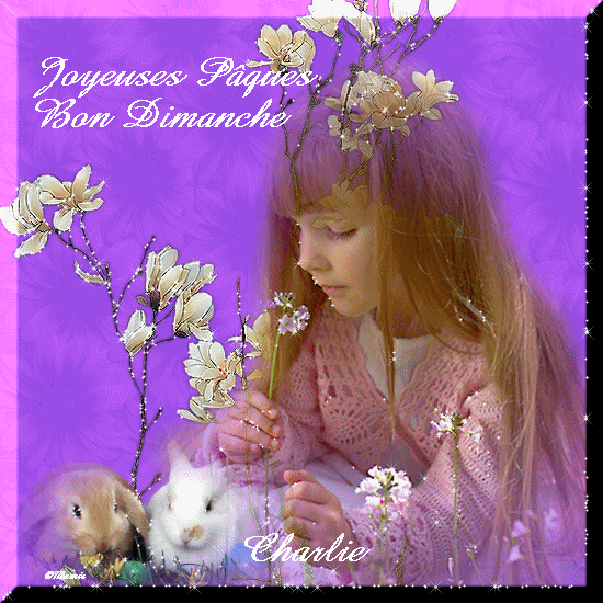 bonjour et joyeux dimanche de Pâques, ce matin on ira chez mes parents!j'espere que vous allez bien depuis hier, profitez bien de ce long week-end pour croquer la vie à pleines dents pas la nourriture! lol! aller bon reveil à vous. . .! ;)