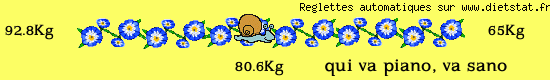 je ne demoralise pas mais c'est frustrant j'ai envie de perdre donc j'y arriverai mais c'est long de plus mardi direction la bourgogne et la bas c'est plat en sauce et le week end prochain on est de sortie on fête les 70 ans d'un ami en normandie holalalalalal dur dur |