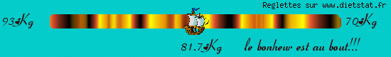 bonjour michel, bravo toutes mes felicitations! petard, tu as déja perdu la moitié de ton objectif, wouha! je suis contente pour toi! ton serieux et ta motivation se payent! genial, tres contente pour toi, bravo et je suppose qu'il en est de même pour ta femme! je me doutais bien que ça venait des piles! ;) lol :D