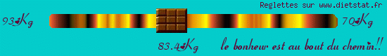 Pour moi : - 700g. Ces 2 derniers jour je ne suis pas venue sur le forum discuter, je me suis payé une crise de cystite, que je n'avais pas envie de rester assise devant l'écran. Avec les comprimés ça passe, on peut dire que ça va nettement mieux. Bonne continuation à tous dans la chasse aux kilos. |
