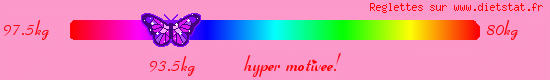anerte, COURAGE! moi aussi je souffre horriblement! je fais de la calcification, j'ai des epines calcanéennes aux pieds(2 epines à chaque pied) et aussi aux genoux, ainsi que hanches, problémes d'hemorragies(vaginales)abcés à l'hene(dù à 1 flechette que j'ai reçu quand j'avais 10 ans!)plein de douleurs tout comme toi, y'a des jours je peux à peine marcher! mais courage faut aller de l'avant, j'avance en me disant qu'il y a toujours plus "grave" que moi! et je cherche à positiver surtout dans les moments dificiles! et franchement ne sois pas déçue 1 kilo 800 grammes en 2 semaines, c'est pas mal! tu as été malade donc c'est normal tu perdras plus la semaine prochaine! tu ne dois en aucun cas te peser avant le jour de ta pesée, je te l'ai deja dit ça demotive de se peser avant le jour! sois courageuse tu vas y arriver, ne desespere pas! ne baisse surtout pas les bras!