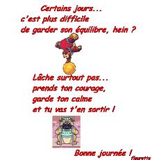 bonjour les filles, dame balance a été très gentille avec moi -1kg j'espère ne pas le reprendre trop vite car ce soir invitation chez des amis et demain bénévolat pour la course à pieds., dur dur. Zikoina tu as beaucoup de travail avec ces repas, attention à la ligne quand même. Evelyne tu feras mieux la semaine prochaine. C'est le WE profite pour te reposer un peu. Silvie 1 an déjà la puce comme le temps passe vite, profites en bien c'est sa 1ère bougie. Clarabelle bravo, continue sur ta lancée et reviens nous voir chaque semaine. Je viens d'aller voir maman, elle n'a toujours pas de force ils vont devoir la transfuser. Je lui ai ramené des oranges sanguines elle aime çà. :-* :-* :-* :-* Bonne journée à toutes, en ce moment il pleut :-S