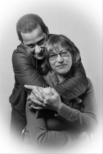 Bjr les filles merci Zikinoa pour m'avoir donner ton avis mais la robe n'est pas encore fini vu qu'elle doit refaire un peu les cotes car trop large. Oui convoqué puor vol de telephone a cause de leur fils on verra la suite. Hier il s'est pointé a 19h tranquille pour manger et pas voulu faire la vaiselle comme dans un hotel mais je les aurais a l'usur. Mimi comment va tu ? Clarabelle? Silvie j'espère que tu va mieux tu es tombé comment? Est que ca va, tu es fortement blessé. Ici temps agréable hier 16 degré le printemps, la il fait un peu plus frais. Je vois que sur la photo j'ai pris des couleurs de ma journée a la mer , Olivier lui est rouge il a eu un coup de soleil. je vous mets une photoe de nous deux qu'on a mis sur notre faire part de mariage. Bon encore une journée a courrir a demain passer une agréable journée mille bz