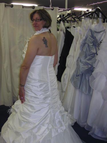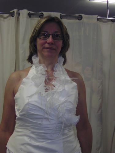 bonjour les filles, très jolie la robe de mariée. Bon comme tu l'as demandé j'ai vu qu'elle était trop large au niveau des hanches et avec les modif. elle va aller comme un gant. Que vas tu faire comme coiffure c'est vrai qu'avec les cheveux plus longs tu es très jolie. Tu devrais aller le plus possible au soleil ou sinon faire quelques séances d'UV çà serait encore plus joli. Je vois sur les photos que vous faîtes un très beau couple amoureux, c super !!!!!! ;) Je vous souhaite des jours heureux. Bon pour le tél. il exagère quand même c fait express pour vous ennuyer. Zikoina que se passe t'il ? des fringales ? bizarre, bizarre . . .. attenttion ma belle ne fait pas comme moi, ne me copie surtout pas ;) Tu étais bien partir la semaine dernière, ne reprends pas ce que tu as perdu. Allez courage on se serre les coudes. Clarabelle çà va ? Silvie comment vas tu, pas trop sévère la chute quand même ? Fais attention à toi. Bonne journée à toutes, sous le soleil encore dans le Nord. Bisous :-* :-* :-* :-*
