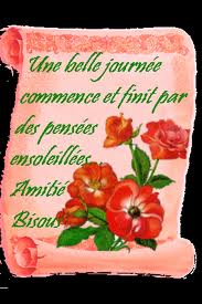 bonjour les filles pas grand monde hier, aminine se n'est pas grave que tu ne viens pas tout les jours mais devenir de temps en temps fait du bien et tu n'es pas seule. Zikinoa j'espère que cette nuit sera reposante et que tu reprenneras des forces.Moi, sa va j'ai eu une très belle étude avec les enfants sur des sujets qu'ils voulaient éclairsir c'est une semaine spéciale et nous avans le frère et la soeur.Magalie est venue passée l'après midi et ca nous a fait tous du bien les enfants ce matin sont gentille pour combien de temps je ne sais pas mais j'espère que sa va durer.Sinon le temps se maintien mais un peu froid. J'espère que mimi,chantalou,clarabelle, et sylvie vous allez bien mille bz les filles