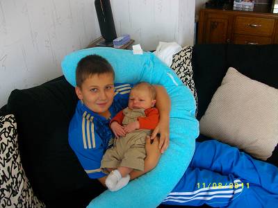 coucou, moi aussi je vous présente Bastien mon huitième petit enfant né le 3 août, donc presque 1 mois. . ..Il est avec un autre de mes petits fils sur la photo. . ...
