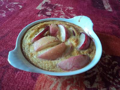 un petit dessert que j'ai fait à midi. . .. Gratin léger de pêche. . . Mon amoureux a trouvé que ce n'était pas assez sucré, parce qu'il est un peu accro des sucreries, moi j'ai adoré. . . je l'ai fait dans des petits plats à four individuels et c'était super, même si on a des invités par exemple.
