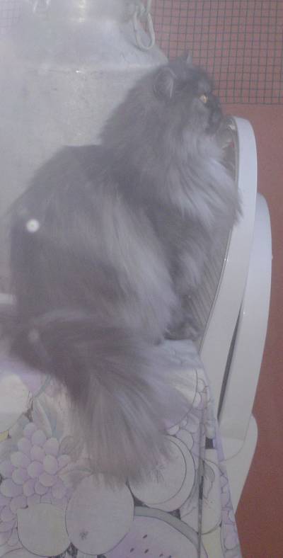 Prudence, courage, malgré mes déboires avec mes pulsions gourmandes, j'arrive à perdre du poids, j'en suis à -5,8 kg, il faut persister et tu vas bien finir par y arriver. Merci Nat pour tes encouragements ainsi qu'à toute l'équipe du 11, Caline, je te présente Bandit, persan black silver tabby, qui était un matou magnifique "à mes yeux car il ne faisait pas de concours de beauté" et surtout très très gentil malgré son regard parfois "persan". je l'ai malheureusement perdu à 3 ans 1/2 après 3 merveilleuses années, il avait la PKD maladie des reins. l'horreur. . . C'était une véritable boule d'amour "un p'tit coeur entouré de poils". Mon précédent persan, bleu, yeux oranges était un drôle de loustic, avec un caractère bien trempé mais tellement attachant, il savait lier drôleries, bétises, espiégleries, et câlins, il était parfait, un vrai chat, mais pas de salon. . . je l'ai perdu il y a 6 ans, il avait 18 ans et autant d'années de souvenirs. J'ai un faible pour les chats, mais j'adore les animaux en général. Aujourd'hui j'ai deux demoiselles, 2 soeurs, elles sont trop mignones avec deux caractères en or. Quant à ton matou noir, il est splendide :x , il me rappelle celui que j'avait chez mes parents "bigoudi" était son nom A D O R A B L E. . . C'est trop top. De gros bisous de Bouille !!! ;) |
