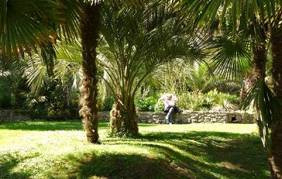 B-) la, c'est bien la Bretagne toujours à la Roche jagu (cotes d'armor) une palmeraie dans le jardin. . . et au fond, ajustez vos lorgnons, c'est moi ;) |