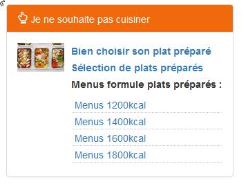 Si tu mange des plats tout prêts, regarde dans NUTRITION > je ne souhaite pas cuisiner Tu as des menus adaptés avec plats préparés. |