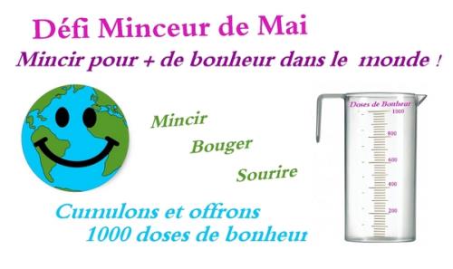 Un petit message pour vous souhaiter déjà un bon 1er Mai avec beaucoup de bonheur répandus avec tous ces brins de muguet !!. . . Aujourd'hui, j'en profite pour vous annoncer le lancement de la nouvelle Animation / Motivation du mois de Mai pour vous aider à trouver, garder et renforcer toujours plus votre motivation minceur et .. bonheur !!! Défi du mois de Mai : Mincir pour plus de Bonheur dans le Monde !! Sympa non ?? RDV dans le Forum, catégorie "Moral et Motivation" ! Le lien direct à mettre dans vos favoris : http://savoir-maigrir.aujourdhui.com/centralized/forum/topic?topicid=216935 C'est parti pour un mois de défis minceur et bonheur . . . !! C'est parti pour un mois de Défi Collectif pour plus de bonheur dans le monde !! A très vite !! Cécile Neuville Psychologue à votre écoute sur Savoir-Maigrir Membre de la TeamMotivation |