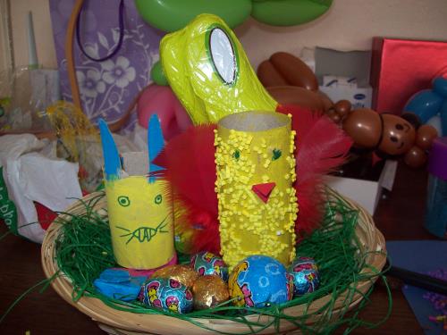 on a fait le poussin en jaune et le lapin le reste c'est des chocolats