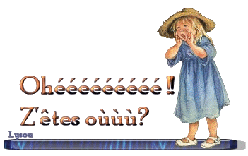 Depuis samedi pas une minute à moi. 10 personnes pendant 3 jours dans un f3 pas facile à gérer, mais quel plaisir d'avoir les enfants et petits enfants.J'adore ces moments là :x :x :x .Le seul bémol ça va être la pesée de samedi prochain :-bd :-bd :-bd. mais tant pis on verra plus tard!!!! Amicales bises pour toi et toutes celles du forum, vacancières ou pas. Bonne journée |