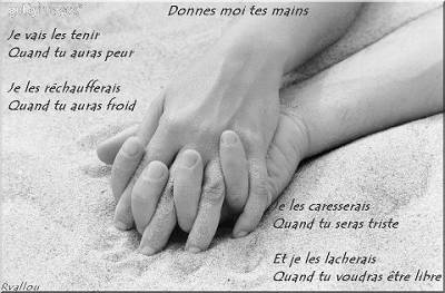 Je n'est pas de mots pour vous remercier pour tous cette amour , suis ci heureuse de faire partit de ce cite , pas pour maigrir mais pour faire conaiscance de perssone comme chacune de vous. NOUs avons tous soufer chaq'une notre histoire je te comprend quand tu dit , ''ont me prenais pour une débile'' . j'ais eu une paralisie faciale il y à 3 ans et puis je me suis rendu chez la redoute avant aller à lhopital pour etre perfuser de cortisone durant 8 jour ; et puis la vendeuse me regarde et puis ca ma fais comme un miraire elle c'est mis à chercher à comprendre et puis elle c'est mis faire le jeste de la bouche une partie de muscle ne repondais pas §!! Ca ma pas fais mal parce que j'aitais adulte masi quand les moqurie commence en enfance ca peux détruire. Je te donne mes mains mais ausi mon coeur quand j'ais lu ce poème les larmes chaudes s'ont tommber sur mes joues car une inconu mofre tous cette amour il sagisait de ma fille allors les émotion ce 'sont multipliér je veux vous remercier non seulment à titsounnette mais aussi à mes amie prosper et quit lit manon et Mart et toutes les autres ; Aujourd'huis grace à vous depuis 2 moi et demi je passe des moments de douleur avec des histoir de chaqune mais soutout des moment ecxepcionelle de perssone que je n'est j'aimais entendu leur voix mes j'ais lus leur coeur et senti leur ame qui est finalment le plus important . |