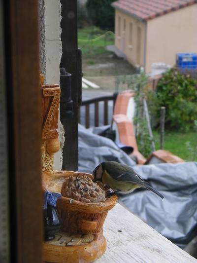 une photo ^prise ce matin ,une petite mésange qui vient taper a ma vitre lorsqu il n y a plus rien a manger ;),vraiment pas sauvage. . ... |