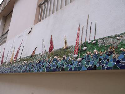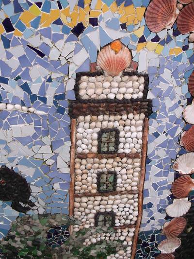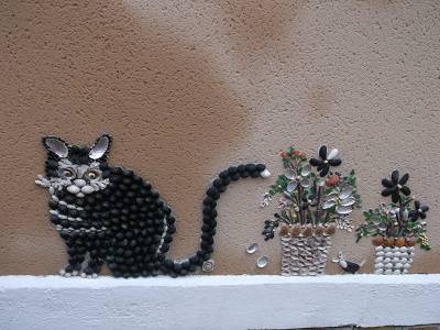 Aux Sables d'Olonne,il y a un petit quartier,le quartier de L'île Penotte où sur ttes les façades,les dessus de portes, dessous de fenêtres, des mosaiques sont faites avec des coquillage.C'est très joli.