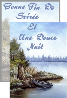 On a eu un brouillard tenace qui est resté pratiquement toute la journée,ce matin en prospection il y avait un genre de grésille qui tombait,et pas chaud du tout.J'ai attaqué l'Actifed jour-nuit,car ça ne s'arrange pas bien au contraire, maintenant la gorge va mieux mais le nez commence à couler tout seul. Stella je ne sais pas si tu connais, mais on a retenu à CARENTOIR,pour le mois d'Août, du 6/08 au 13/08,comme ça on pourra aller au festival de Lorient. Demain je reste à la maison enfin le matin,car l'après-midi on va aller faire un tour aux impôts pour se faire expliquer des trucs. J'espère que vous avez toutes passées une bonne journée,je vous souhaite à toutes une excellente soirée. :-* :-* |