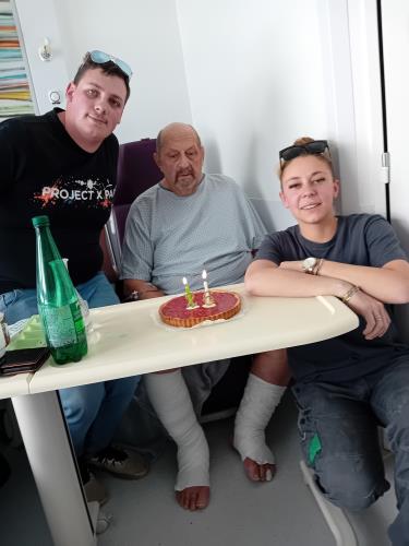 Bonsoir avec une boisson fraiche, il a fait encore très chaud nous rentrons de Chambéry, ça va mais toujours pas de date de sortie pour la maison de rééducation.
