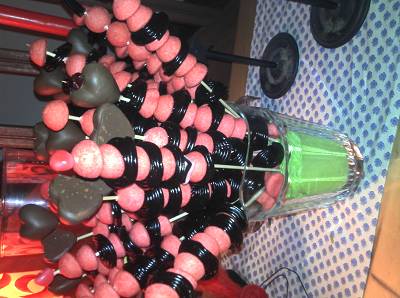 J'ai oublié, je vous mets les photos de mon bouquet de bonbons, il n'y a que trois sortes de bonbons car j'ai fais avec ce qu'elle aimait donc il manque un peu de couleur !