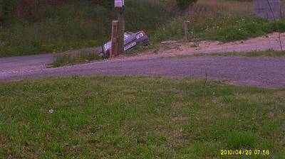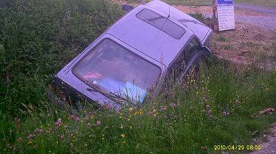 Dans le fossé chez mon fils! elle a passé toute la nuit sagement là ou je l'ai garée et, brusquement,après 6h du matin a décidé de dévaler la pente!!!! et finir ainsi au fond d'un fossé de 2m de profond en passant entre deux poteaux sans les toucher. . .. . .. . .. . .. . .. voilà!!!!!!!! ma fin de vacances! je suis rentrée chez moi avec ma belle fille! sur le forum "motivations quand tu nous tiens" je crois |