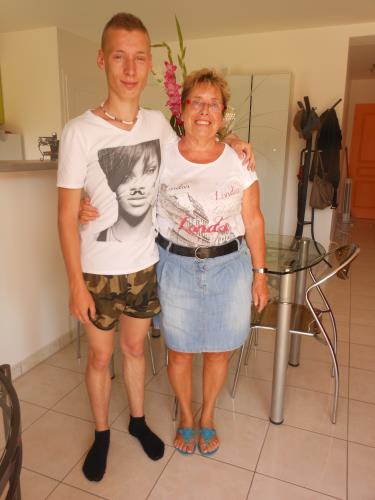 Mon FABY est reparti ce midi il est parti sur Toulouse pour finir ses vacances il rentre en normandie mercredi, court séjour mis plein de richesses il va travailler 2 semaines ( du 5 aout au 17 aout)dans une société HLM pour faire du nettoyage ça va lui faire un peu de sousous je vous met des photos de mon Faby et sa tata d'amour le beau bouquet de fleurs qu'il m'a offert bisous à vous toutes |