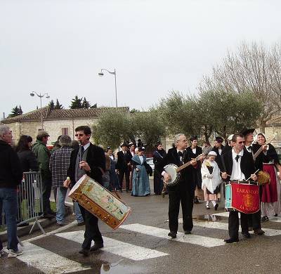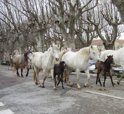 Je suis dans un village en pleine campagne cévenole et une manade est installée à 500 m de chez moi où taureaux et chevaux paissent tranquillement dans les champs. Comme je disais que j'allais prendre le taureau par les cornes, j'ai illustré mes propos. Il s'agit de taureaux pour les courses camarguaises (courses à la cocorde, toro-piscine, bandido, etc. . ..) C'est le folklore camarguais. Si tu aimes, sache que le 1er week-end de mars à Aimargues, il y a la fête de Fanfonne Guillierme. La journée commence par la messe en provençal avec les arlésiennes, bénédiction des chevaux, défilé des arlésiennes avec fifres et tambourins, bandido (3 à 4 toros parcourent les rues entourés par des guardians), roussaïto (présentation des poulains de l'année avec leurs mamans)et l'après-midi après le repas une course camarguaise. |