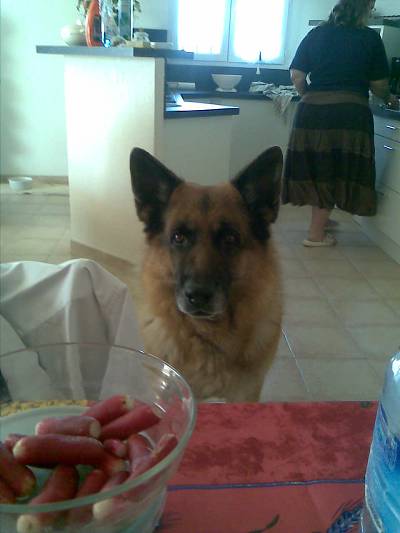 Hier, un peu angoissée après la visite chez le véto pour notre toutou, car depuis 1 mois, il y avait un voile sur les yeux qui progressaient à vive allure. Nous avons pu avoir un RV ce matin, chez un véto spécialisé en ophtalmologie. Il a une kératite superficielle chronique. Traitement à vie, mais devrait retrouver la vue car nous nous y sommes pris très vite. Le traitement ne sera pas très facile : pomade à mettre sous la paupière 6 fois dans la journée et vue sa patience . . ... De plus, il ne doit plus aller au soleil entre 10h et 18h l'été et 12h -16h l'hiver. Lui qui aime lézarder en plein soleil !! J'espère qu'il s'habituera à ce traitement et qu'il retrouvera vite la vue car là, je pense qu'il ne voyait plus de son oeil gauche et le droit s'opacifiait de jour en jour, il ne devait distinguer que des ombres. Il tatonne, se cogne. Tout devrait rentrer dans l'ordre. Prochaine visite début septembre. En attendant, je vous envoie une photo de Rollie. |