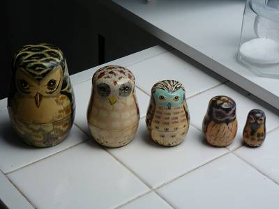 une famille chouette-gigogne que j'ai ramenée de Moscou pour Mamiblue mais pour toutes celles qui aiment aussi :-* :-* :-* :-* :-* :-* |