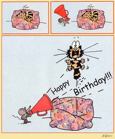 Remarque, ceux qui me connaissent savent que je suis une spécialiste pour arriver 24h près. . . ce qui me fait écrire "je te souhaite un joyeux après-anniversaire. . ." Alors, TIGROU te voilà sur ma liste :x :x :x Heu, l'image est plutôt à interpréter en inversant les rôles. . . Tigrou réveillant les tigrounettes @-) @-) @-) Bonne nuit aux tigrounettes, justement. |