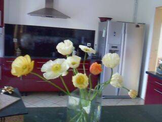 Normalement ma cuisine se termine aujourd'hui, elle est couleur moka et wengé! promis dès qu'elle est fini je la prend en photo pour vous la faire voir. hier soir au menu: soupe bien chaude pour essayer de me réchauffer (lol), macédoine de légumes chaude avec surimi et une lichette de crème 5%, 1 yaourt nature 0% et un kiwi. Ce midi pour mon centre aéré c'est ravioli!!! ils adorent. Moi ça sera soupe chaude, je ne sais pas encore quel légume ni quelle viande, car plaque induction tjrs pas branchée et de toute façon je n'ai pas de casserole induction je dois en acheter samedi après midi, j'ai juste un wok et une sauteuse qui va sur ma plaque induction!!! donc j'improvise et encore plus là que c'est une cuisine au camping gaz ou au micro onde. . ... je file un ptit arrive, je reviens tout à l'heure avec le café bisous |