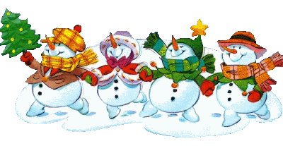Maintenant, c'est le tour du jour de l'an . . . les jours qui ont déjà cessé de rétrécir et qui vont bientôt reprendre du poil de la bête : tout comme nous. Symptôme révélateur, Noël passé, je n'ai plus cette obsession de bouloter tout ce qui me tombe sous la dent :^> :^> :^> Les pensées douloureuses retournent au placard et la vie redevient "normale". . . Donc :VIVE DEMAIN et vous, dormez bien Mes bonshommes de neiges ressemblent un peu à l'ambiance de notre petit groupe, vous ne trouvez pas :D :D :D |