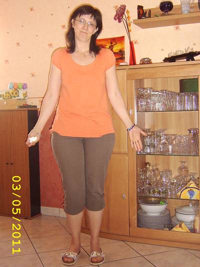 Voilà, c'est moi 100% nature (même pas coiffée rhhho !) il y a 15mn : poids net 72,2kg hier matin. . . Là à revoir les photos je suis bien motivée pour ma journée 100% rattrapage ! Allez c'est parti mon kiki !!!