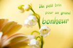 Bonne journée à toute en ce merveilleux jour du 1er mai, que ce petit brin de muguet vous porte bonheur et chance. Mon mari aujourd'hui, n'allait pas trop mal, hier pas bien, dimanche bien, je crois qu'il se fait du souci, les rendez-vous sont trop longs, et on n'a pas fini, heureusement que je vais pas trop mal. Demain il va voir le médecin, on verra ce qui lui dira. Aujourd'hui, un ami nous a payé le resto, j'ai pris salade verte avec jambon du pays, 2 tranches fines de rôti de veau avec des haricots verts et lardons, chèvre et île flottante, mais ce soir nous sommes invités chez nos enfants, ça me porte peine quand il faut faire des repas. Cette semaine j'ai perdu 100g, je n'arrive pas à perdre plus, pourquoi ? je ne comprends pas. Astride, j'espère que tu vas mieux. Bisous à toutes