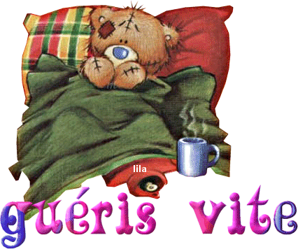 forme depuis 3 jours ,angine carabinée et avec beaucoup de fièvre bon !je vois que MAMIDOUCE n'est pas revenue, mais entre son fils sa nouvelle petite belle fille et ses petites filles elle doit avoire pas mal de chose à faire.Puis quand on rentre il y a tout à remettre en ordre. J'espère que demain ça ira mieux ,je vais me recoucher bonne nuit MAMIDOUCE et gros bisous. |